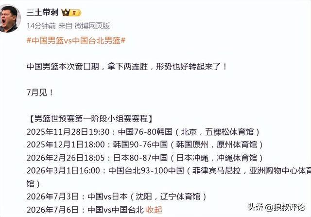 北京时间3月1日,男篮世预赛窗口期,中国男篮100-93击败中国台北男篮,取得了世预赛的两连胜。