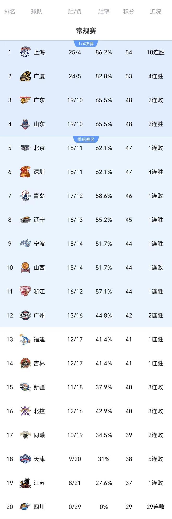 CBA狂欢夜!广东惨败上海,北京遭爆冷,辽宁逆转,最新排名如下