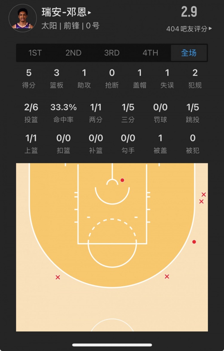 太阳28号秀 瑞安-邓恩 登场10.8分钟