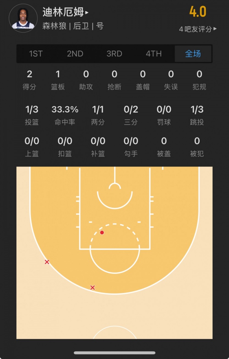 森林狼8号秀 罗布-迪林厄姆 登场9.4分钟
