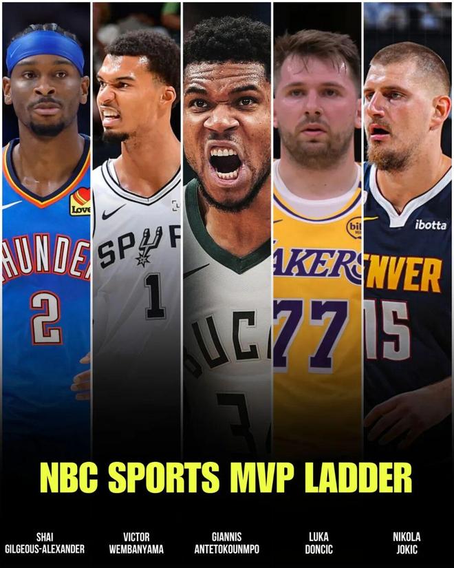 事实也是,在前两周比赛打完的时候,NBC评选了一份MVP排名,约基奇的名字只出现在了第五位。