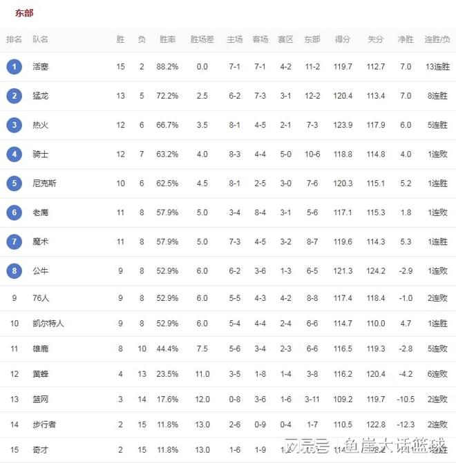 北京时间11月26日NBA进行了3场比赛,这些比赛完毕之后NBA最新排名正式出炉。奇才在本赛季状态糟糕依旧是东部鱼腩球队,赛季至今奇才更是仅仅取得了一场比赛胜利而已,反观老鹰在