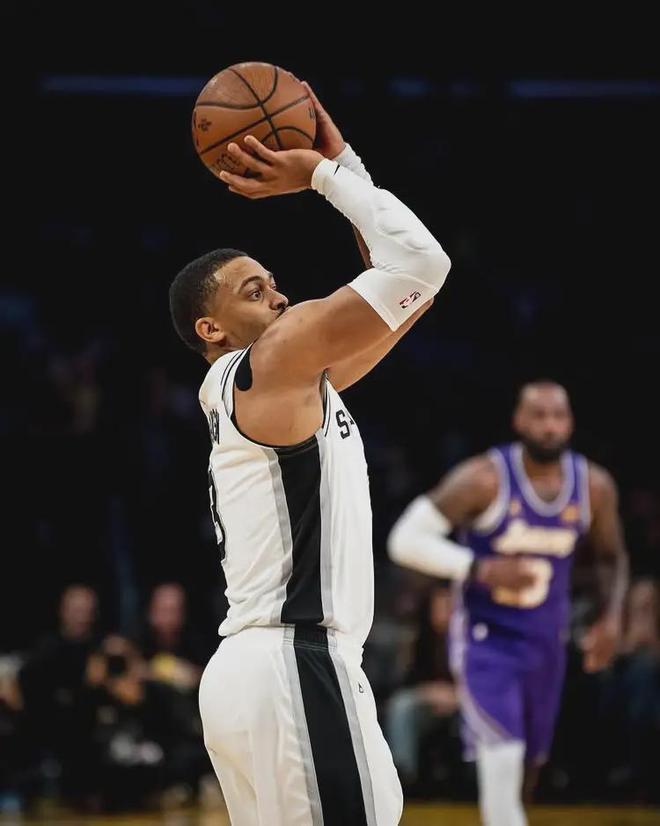 第二节尚帕尼连续三分命中,马刺领先到17分打停湖人。文班伤停的这段时间,马刺战绩并没有明显下滑,能打的球员太多了。上半场最后时刻,詹姆斯隔扣科内特,成为湖人第二节不多的亮点。半场战罢,马刺70-58领先12分。