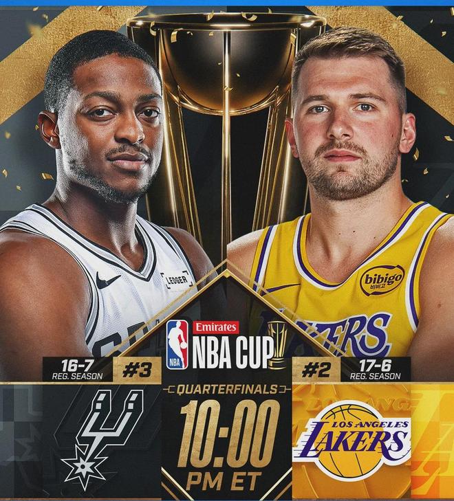 北京时间12月11日,NBA杯1/4决赛:湖人主场vs马刺,胜者将在半决赛对阵雷霆。截至今天赛前,湖人17胜6负西部第二,马刺16胜7负西部第五,两队只差1个胜场。这场比赛输赢,不仅决定谁进半决赛,还直接影响西部前五排名。