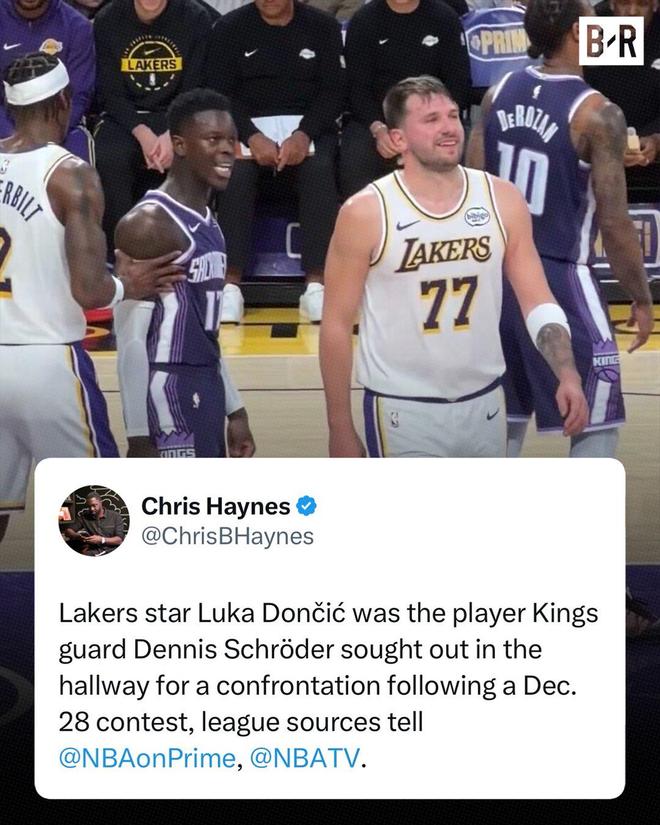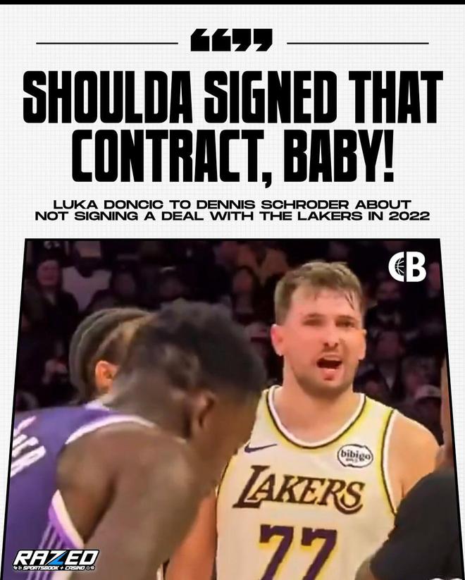 时间回到12月29日湖人125-101击败国王的比赛中,比赛期间东契奇与其对位的施罗德数次发生口角与摩擦,暂停时东契奇更是嘲讽施罗德道:“宝贝,你当初真应该签下那份合同。”