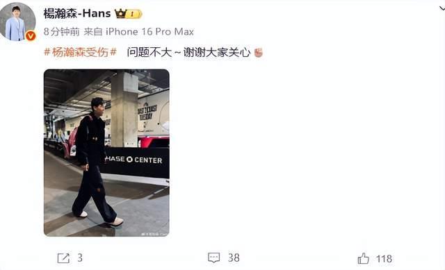 刚刚,杨瀚森本人发文回应:问题不大,谢谢大家关心。