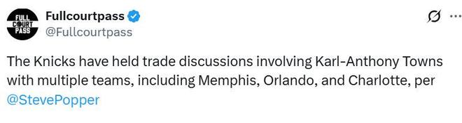 北京时间1月20日,尼克斯主场97-114不敌独行侠,遭遇4连败。队记Steve Popper报道称,尼克斯已经与多支球队谈判关于唐斯的交易。
