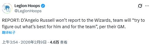 北京时间2月9日,在今年NBA交易截止日前,华盛顿奇才通过一笔以安东尼-戴维斯为核心的多方交易,得到了多名球员,前全明星球员拉塞尔也被包含在这笔交易中。不过,奇才总经理威尔-道金斯透露,拉塞尔将不会向球队报到。