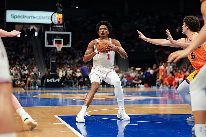 本场比赛中,火箭虽然取得了胜利,但是球队的先发控卫阿门-汤普森(Amen Thompson)的表现并不理想。阿门全场出场36分40秒,投篮8中3,三分线外3中0,罚球3中3,得到了9分7篮板2助攻4抢断1盖帽的数据,还有3次失误和4次犯规,正负值+5。阿门在进攻端还是没有展现出足够出色的得分能力,他在外线投篮方面的表现更是惨不忍睹,他也没有办法得到更多的分数,而且他在传球和组织方面的能力也非常糟糕。作为一名控卫,他的失误数竟然比助攻数还多,简直是一件无法理解的事情。阿门在防守端的作用非常突出,能力非常出色,依然是一名顶级防守者,但是他在进攻端给球队造成的负面影响也是肉眼可见的,他本应该做得更好才对。