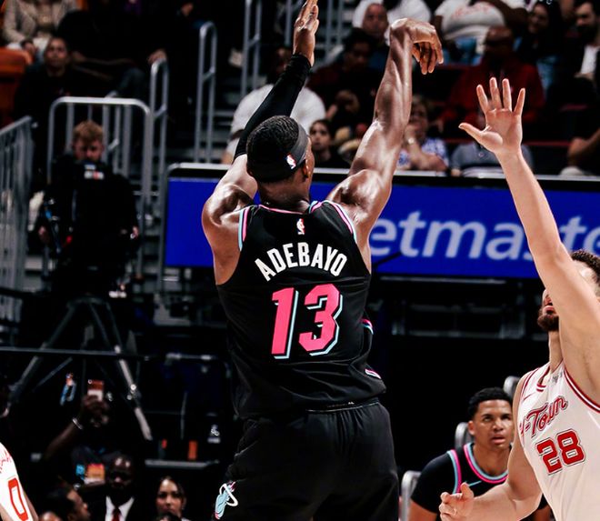 阿德巴约贡献两双数据,引领热火用团队攻势逆转终结火箭3连胜。