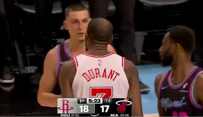 火箭遭热火逆转终结3连胜杜兰特32+6+8冲突吃T阿门20+11