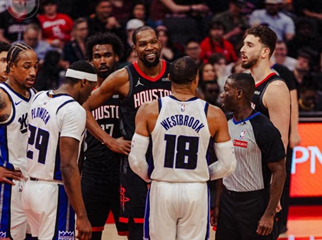 另一种更合理的思路是摆出投射阵容:谢泼德和伊森组成后场,杜兰特打三号位,史密斯与申京继续在内线。这样阵容中只有申京一人是非空间点。本赛季申京三分命中率29%,赛季初一度飙到41%,但后期有所回落。尽管如此,数据却揭示一个有趣的隐藏信息:当谢泼德、杜兰特和申京三人同时在场,而阿门不在时,火箭的百回合攻防效率达到了联盟顶级水准。这得益于谢泼德强大的拉开空间能力,无论他与杜兰特挡拆,还是与申京配合,对手都不敢轻易收缩内线防守,给了火箭更多中远距离出手机会。申京在中距离和三分上的命中率也随之提升,这正是现代篮球强调空间的体现。