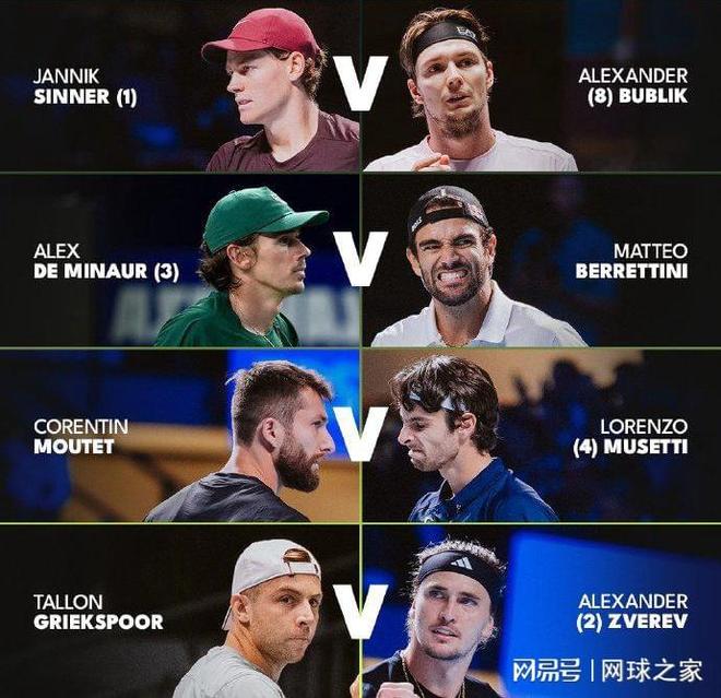 我们再回到赛场。北京时间昨晚,本周两站ATP500室内硬地赛结束了单打第二轮较量,八强全部产生。维也纳站:头号种子辛纳以6-2 7-6(4) 击败同胞科博利,跻身八强将迎来和哈萨克斯坦人布勃里克本赛季的第四次交手,后者以6-4 6-2完胜阿根廷人F-塞伦德罗。6号种子、俄罗斯名将梅德维德夫则被法国人穆泰以7-6(3) 6-4淘汰出局,无缘八强。