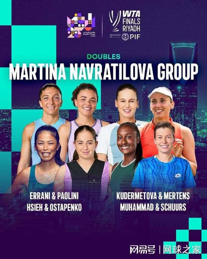 双打方面:唯一的中国面孔、中国台湾名将谢淑薇与拉脱维亚名将奥斯塔彭科的跨国组合被抽到了“纳芙拉蒂洛娃组”,将与埃拉尼/鲍里妮、库德梅托娃/梅尔滕斯、穆罕默德/舒尔斯争夺出线席位。“胡贝尔组”的四对组合是西尼亚科娃/汤森德、达布劳斯基/卢特利芙、安德列娃/施耐德、巴博斯/史蒂芬妮。