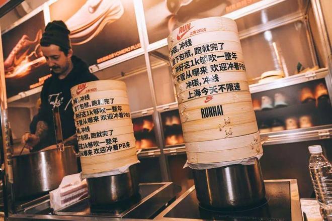 比赛前一天的跑百巷早餐跑也显得形式大于实质。虽然带着品牌符号的各种餐具细节很出片,但实际上我认为一场主赞助商的早餐跑应该像纽马那样,尽可能多地欢迎和拥抱远道而来的跑友,让普普通通的跑者们一起放松、交流。如果要精雕细琢活动细节,讲究出图品质,那么参与者势必又只能是平时品牌一直在合作的时髦跑团,无法包容更多普通大众跑者,多少有些可惜。