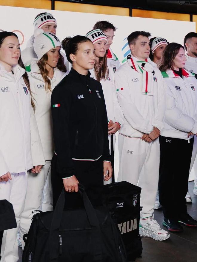 东道主意大利队的奥运服饰由意大利奢侈品牌阿玛尼旗下的运动线EA7设计,队服以乳白色为主色调,加以立体刺绣“ITALIA”,简洁优雅。白色还代表“尊重、简洁、洁净和纯粹”,象征着人与白雪皑皑的山峰和谐共处,符合奥运理念。