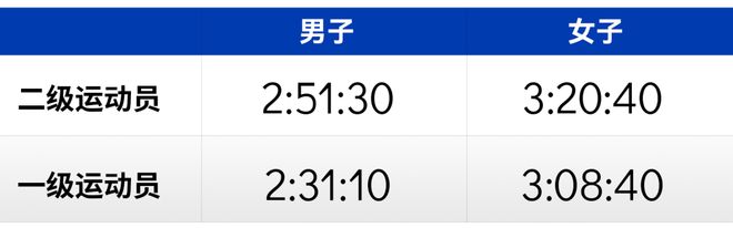 在中国业余跑者中,它无疑是高水平(甚至有人拿它作为严肃跑者分界线)的象征。比如按照国家体育总局最新版的《运动员技术等级标准》来看,男子破三意味着离运动员达极更近;女子破三则可达标马拉松国家一级运动员。