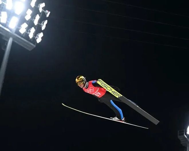 因此,运动员在空中的时候,会尽可能将身体前倾,滑雪板向外张开,把整个人变成一个巨大的“V”形,宛如鸟张开翅膀滑翔一样。