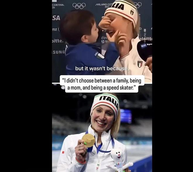 洛洛布里吉达赛后说,“我没有在滑冰和做妈妈间做选择”,就像她一边接受采访,一边和儿子搞怪。