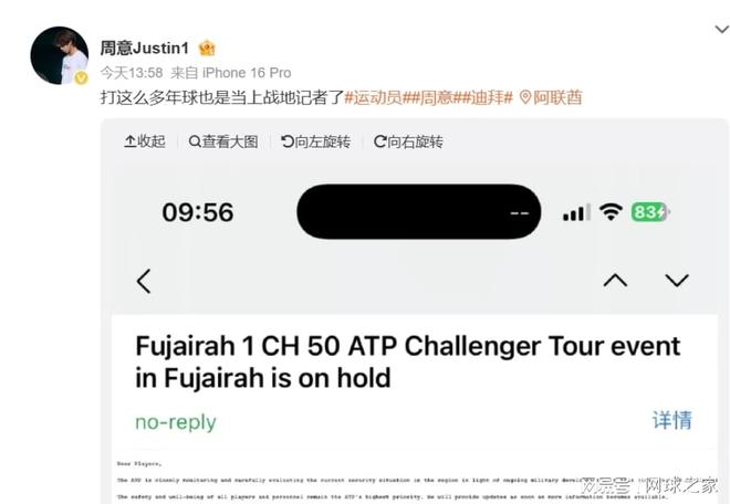 41名ATP人员被困迪拜梅总打趣来场闭门赛,周意发文称成战地记者