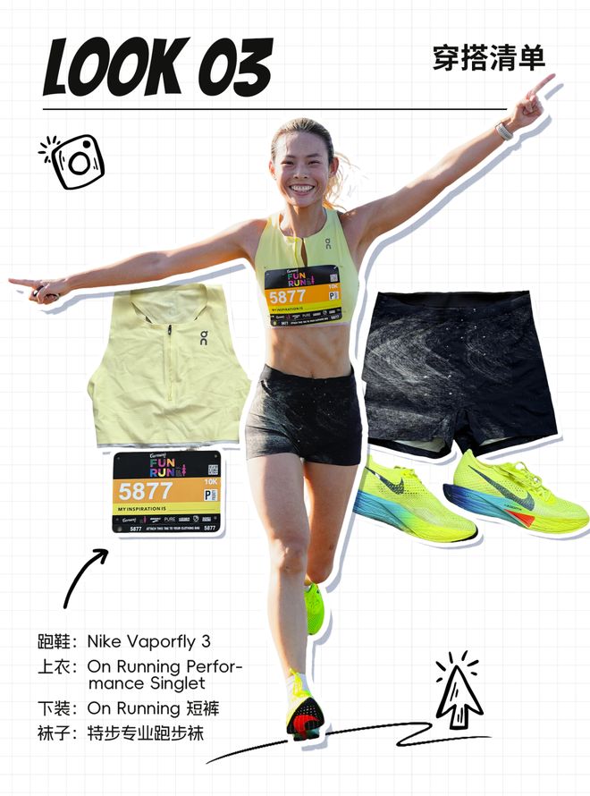 此外,她还给周日参赛的其他女生们一个小建议:“穿搭尽量选择自己试过、信得过的装备,比赛日不是尝试新品的好时机;以及颜色尽量选择鲜艳一点,这样跑起来心情不仅会变好,赛道摄影师也会更爱给你特写哦。”