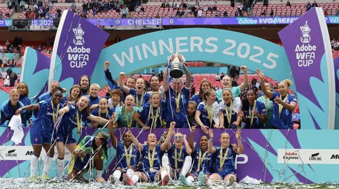 切尔西女子足球俱乐部夺得女子足总杯冠军图片来源:BBC