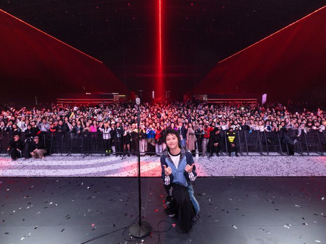 当心跳与节拍触发竞速舞台,先锋音乐人窦靖童携以“速度”为灵感创作的全新作品《Illumination》,于现场完成全球首发。她以独特的电子律动,拆解着外在节奏与内心频率的对抗,将跑步的步频节奏与赛车极速的张力转化为音乐语言,把高楼林立的城市景观与内心的流动速度织成诗篇。伴随着电子节拍,窦靖童带领全场观众互动跳跃,构成这场“竞速实验”里共同跳动的脉搏。