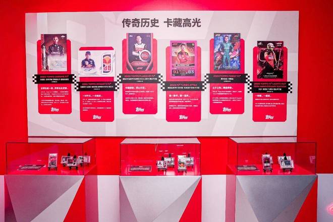 Topps也在此设立了专门的展区,展示了包括全球限量仅五张、含有七届世界冠军汉密尔顿亲签亲穿物料的“Topps顶级王朝”系列卡牌在内的诸多经典赛车卡牌。对于收藏卡玩家来说,这个展区无疑是名副其实的“打卡点”;至于大众车迷,拆一包F1中国大奖赛限定卡包,同样不失为一种新奇体验。