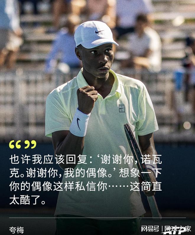 但比起这些纪录,更让夸梅心潮难平的,是赛后发生的那一幕。“我有个小秘密。”夸梅在赛后采访中紧张得语无伦次,脸上写满了难以置信,“赢球之后,诺瓦克给我发了信息。我现在真的太紧张了,完全不知道该怎么回复他。也许你们能给我点建议?”