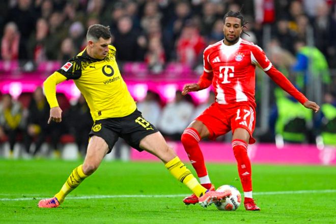 总身价方面,拜仁达到了9.5亿欧元,多特蒙德也有5亿欧元。开场之后,主场作战的拜仁气势如虹。