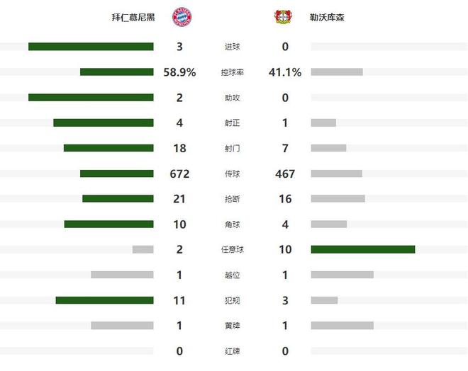 虽然在接下来的时间内,拜仁没有能够进一步改写比分,但他们在防守端也没有给勒沃库森任何的机会,如愿以偿在安联球场零封了对手,终结药厂德甲客场不败的纪录,同时也把自己保持的德甲开赛连胜纪录扩大到了15场。