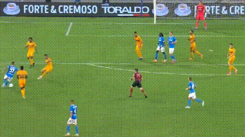 上半场第39分钟,吉尔摩在禁区内晃过防守球员,随后起脚抽射,皮球击中客队球员,鬼使神差般变向飞向远角,最终打得门将措手不及,那不勒斯幸运1-0领先。