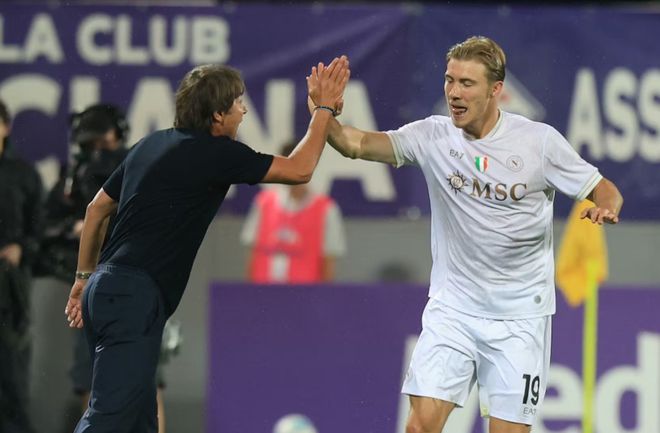 孔蒂以霍伊伦和麦克托米奈为例,这两位在曼联一度挣扎的球员,如今在那不勒斯重获新生。