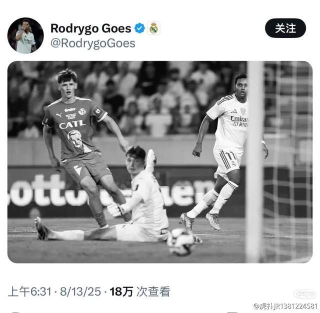 如今,罗德里戈在社媒上放出进球黑白照,大概率就是暗示这是自己在皇马的最后1粒进球。在英超本周末就要开战的情况下,曼城迅速谈妥萨维尼奥的离队和罗德里戈的加盟,可能性还是很大的。而根据西甲的赛程安排,皇马新赛季首轮与奥萨苏纳的比赛要在本月的20日才能开战,这也意味着,罗德里戈很有可能无缘在伯纳乌与球迷告别。这张黑白照,或许就是在表达一种遗憾和伤感吧。