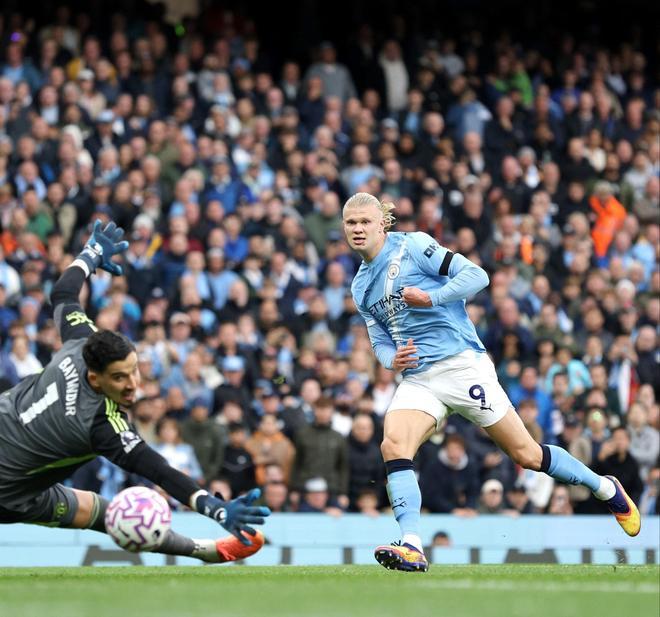 比赛开场仅30秒,哈兰德就在禁区边缘轰出一记极具威胁的射门,皮球擦着立柱飞出底线,为本场比赛定下基调。