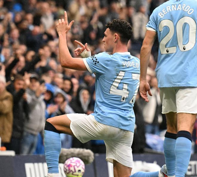 第16分钟,曼联曾短暂看到希望。阿玛德·迪亚洛奋力跃起头球攻门,但未能压住皮球,将球顶高。仅仅两分钟后,曼城便还以颜色:杰里米·多库在左路强势突破,连续摆脱三名红魔防守球员后横传,福登中路包抄头球破门,曼城1比0领先。