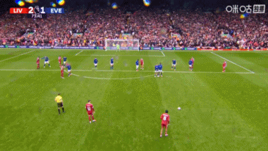 第74分钟,利物浦前场任意球机会,索博斯洛伊主罚直接攻门,这球绕过人墙但高出横梁。↓