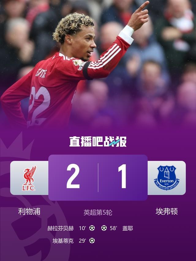 开局5连胜!利物浦21埃弗顿6分领跑埃基蒂克破门赫拉芬贝赫传射