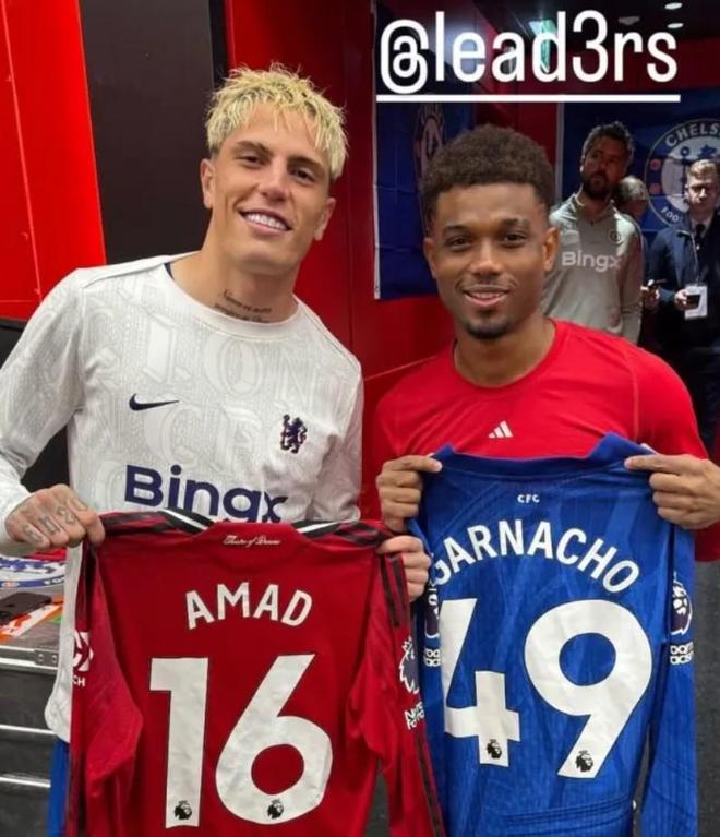 阿马德看起来仍然与加纳乔保持友好关系,两人在比赛后于切尔西更衣室外交换了球衣,并微笑合影。
