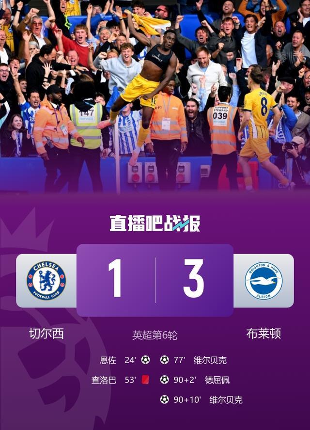 3轮不胜!十人切尔西1-3布莱顿吞2连败 查洛巴直红维尔贝克双响