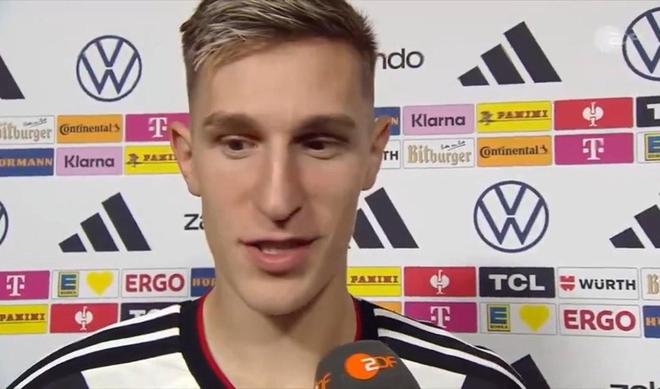 北京时间11月18日,在世预赛欧洲区A组的末轮比赛中,德国队在主场6-0大胜斯洛伐克,顺利以小组第一的成绩挺进2026年世界杯,赛后此战首发出场的施洛特贝克接受了媒体的采访。“当我