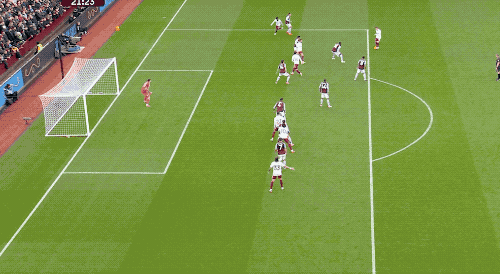 第65分钟,特罗萨德传球被抢断,维拉的反击速度相当快,沃特金斯面对多人包夹起脚射门,拉亚再次做出关键扑救。