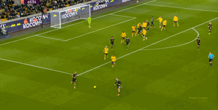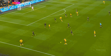 正当曼联即将带着1-0的比分进入中场休息的更衣室的时候,曼联几乎在最后一次防守中出现了问题,面对狼队的连续传中,阿玛德-迪亚洛出现了防守上的松懈: