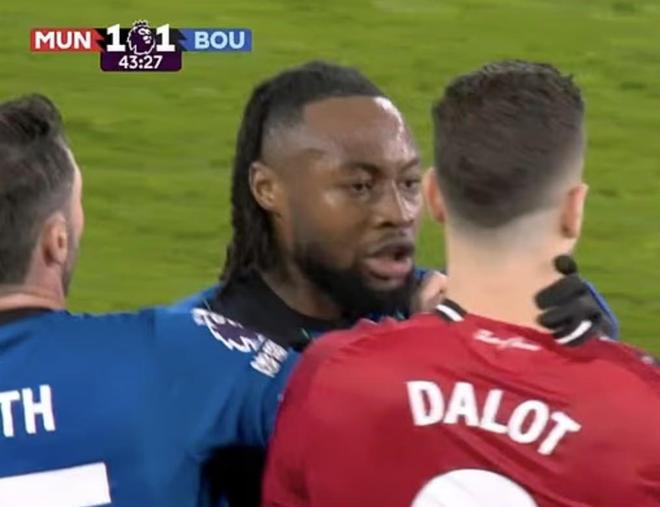 在伯恩茅斯对阵曼联的比赛中,塞门约疑似掐住达洛特的喉咙,却仅被出示黄牌并留在场上。