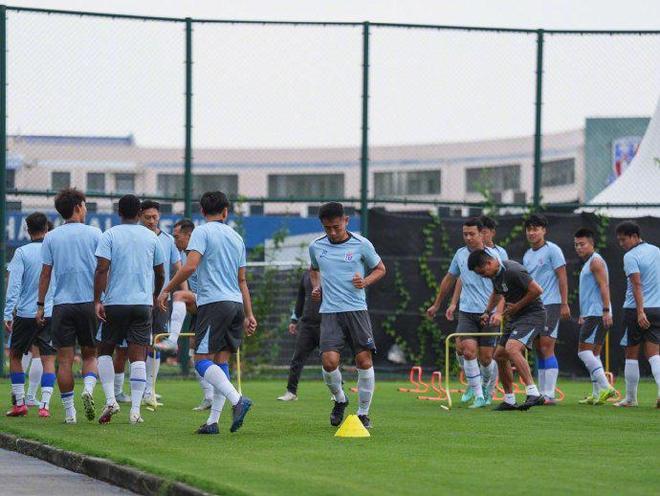 从现场图片可以看到,此前因伤长期缺阵的谢鹏飞已经正常参与训练。