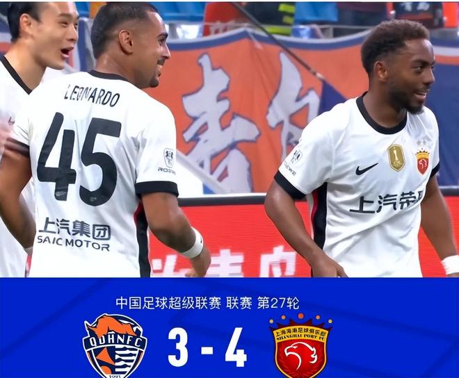 今晚率先出战的是上海海港,他们客场挑战积分榜倒数第二的青岛海牛。开场11分钟,青岛海牛取得梦幻开局,萨里奇斜传禁区,兰克尔-泽胸部停球后左脚凌空爆射破门。但海港迅速回应,第14分钟,李帅下底传中,加布里埃尔头球破门扳平比分。第15分钟,兰克尔-泽上抢时被颜骏凌踢倒,主裁判起初判罚点球,VAR 介入后改判兰克尔-泽假摔并出示黄牌。第30分钟,莱昂纳多挑射入网,助海港 2-1 反超。第37分钟,兰克尔-泽打门被扑,王燊超解围失误送乌龙助攻,兰克尔-泽破门帮海牛2-2 扳平。第40分钟,莱昂纳多凌空抽射完成双响,海港3-2 再次领先。下半场尾声,第89分钟莱昂纳多直塞,李新翔禁区低射得分,海港 4-2 扩大优势;第95分钟,兰克尔 - 泽倒钩造成颜骏凌脱手,宋文杰补射破门,海牛3-4 惜败,海港惊险逆转。