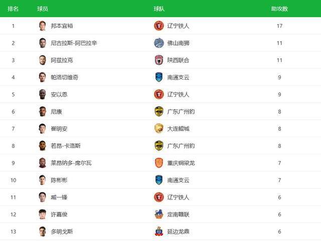 第一个,邦本宜裕本赛季在中甲已经是贡献4球17助攻,1人独造21球,数据相当亮眼。在整个中甲助攻榜上,邦本宜裕以17个助攻遥遥领先,比第2名足足多出了6次助攻,在联赛只剩下2轮的情况下,邦本宜裕基本锁定了中国职业联赛历史上第1位日本籍助攻王。